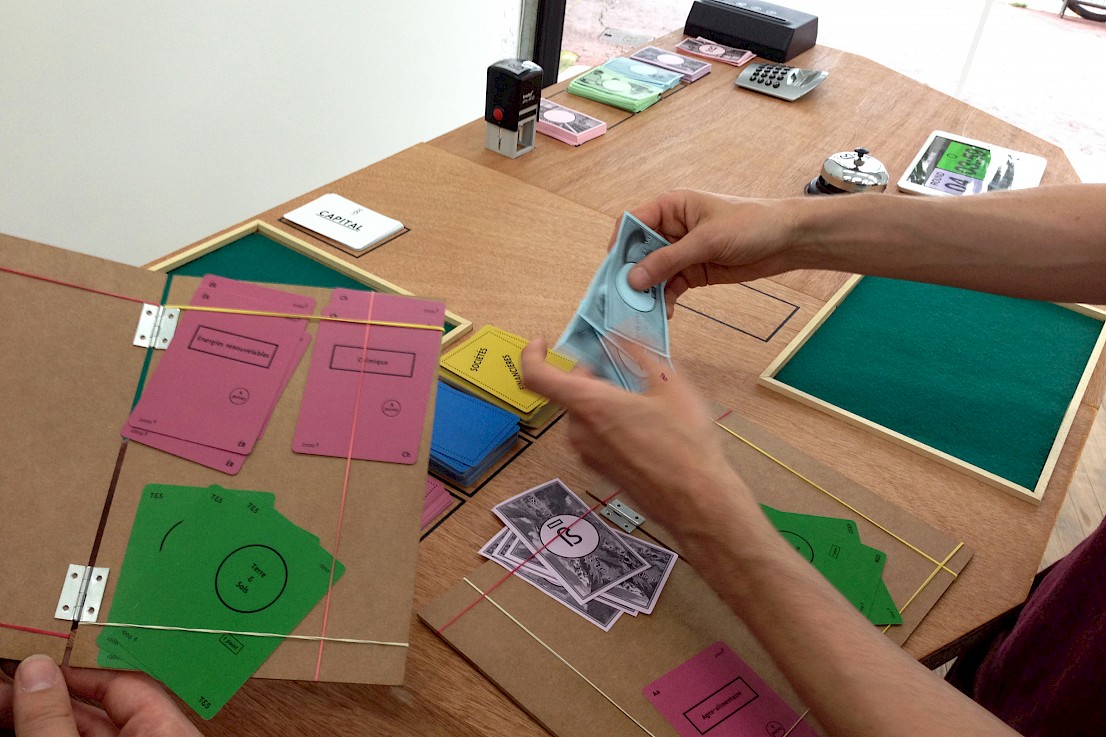 Samsara (2016) est un jeu de société réalisé en collaboration avec Naïs Calmettes & Rémi Dupeyrat et Liza Maignan. Il reprend les règles du jeu Geconomicus® et permet d'expérimenter des systèmes économiques alternatifs.